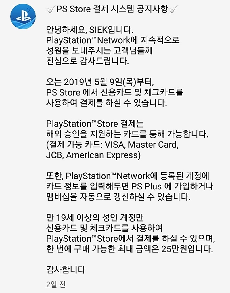 플레이스테이션 스토어 카드 결제되네요
