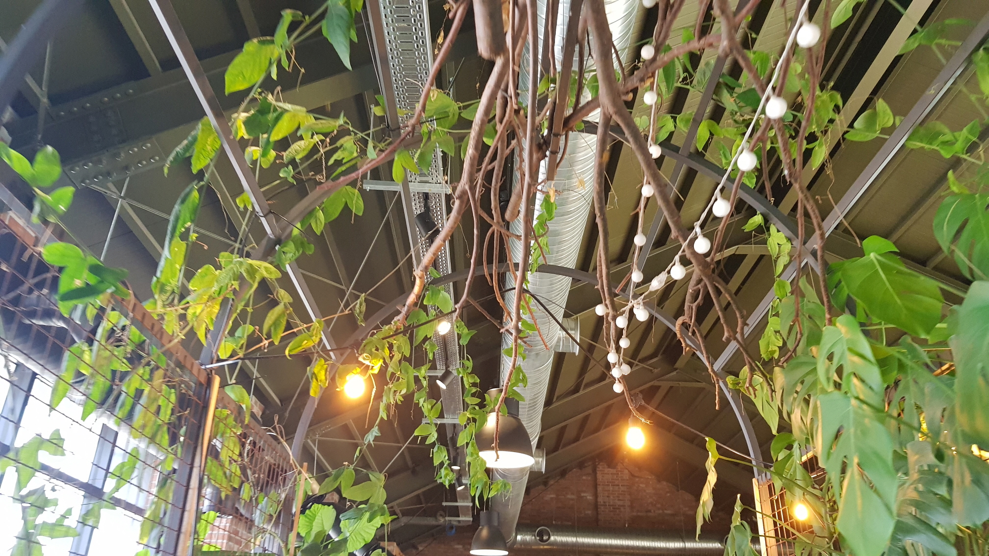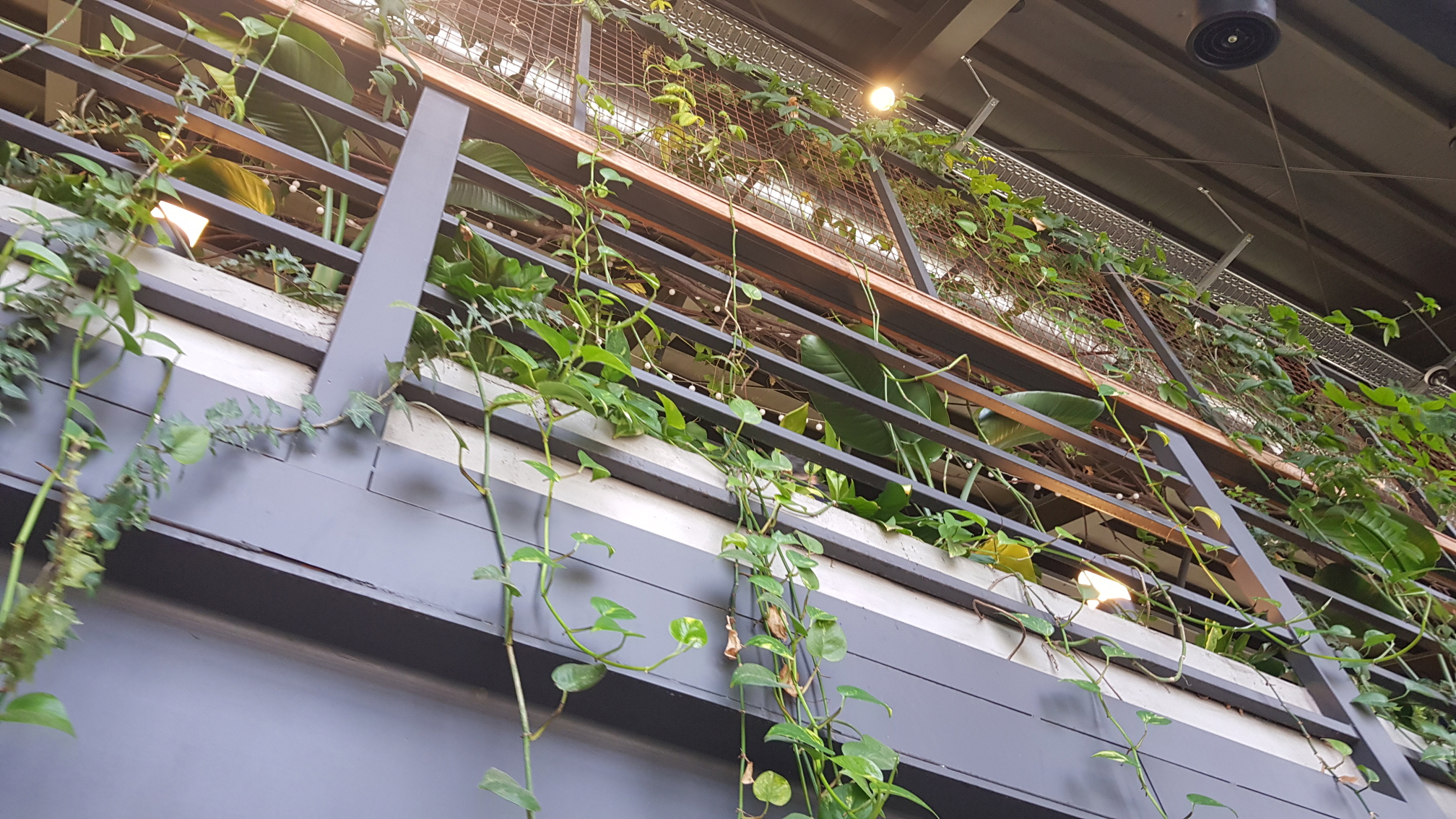 건물 내에 푸릇푸릇한 식물이 있으니