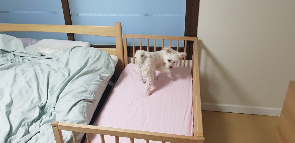 몰티즈라 털 빠짐도 없고 처음에는 침대에 실례를 했었지만