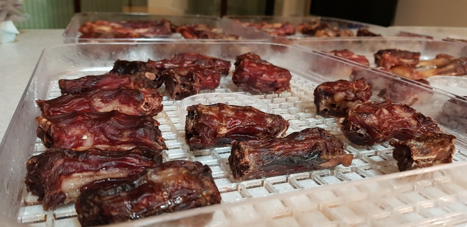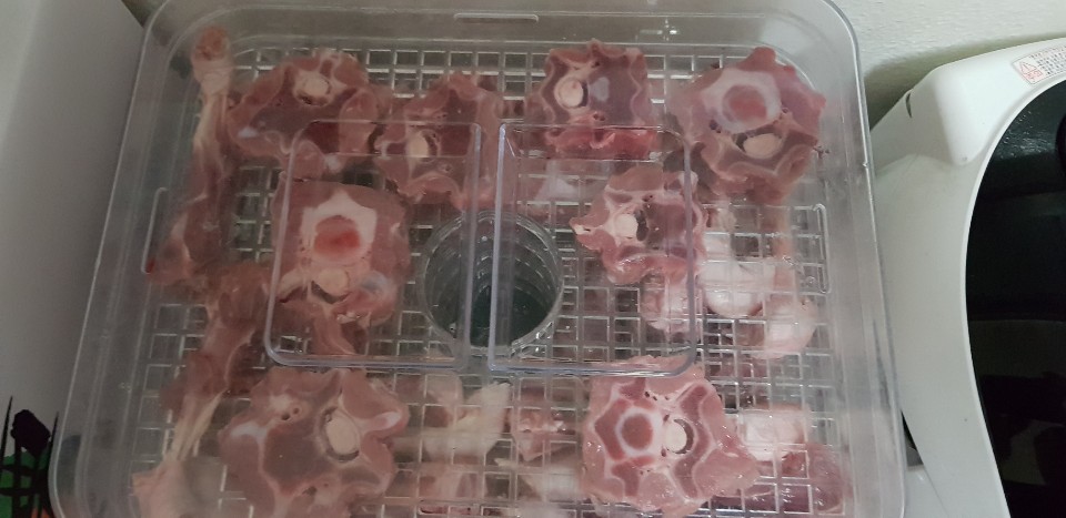오리 도가니 뼈 1kg, 오리 목뼈 1kg, 송아지 목뼈 1kg 이렇게 건조했습니다