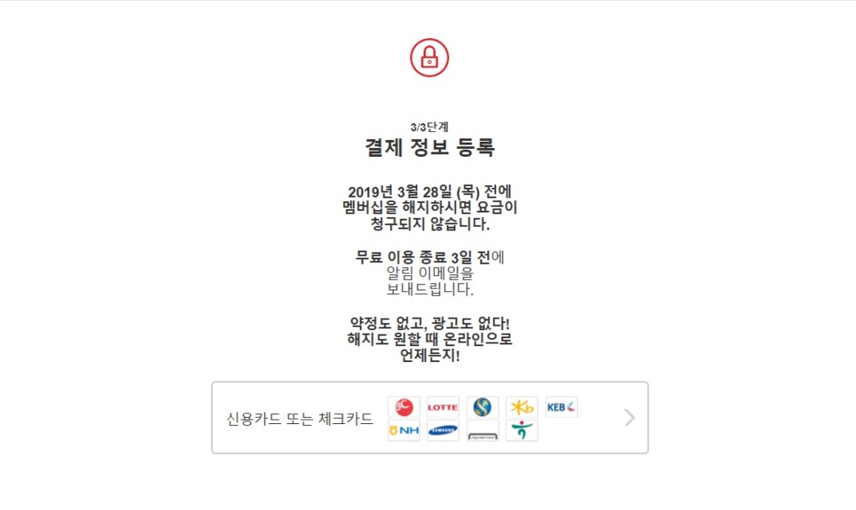 결제정보를 입력하면 되는데 카드 정보를 입력하고 아래에 체크박스를 체크 후 멤버십 시작