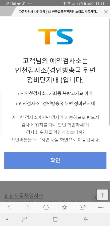 저는 인천 자동차 검사소로 다녀왔습니다