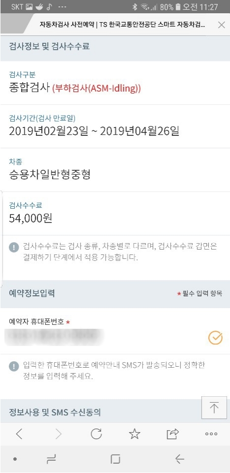 수수료는 이번에 종합 검사라 54000원이네요 ㅠ